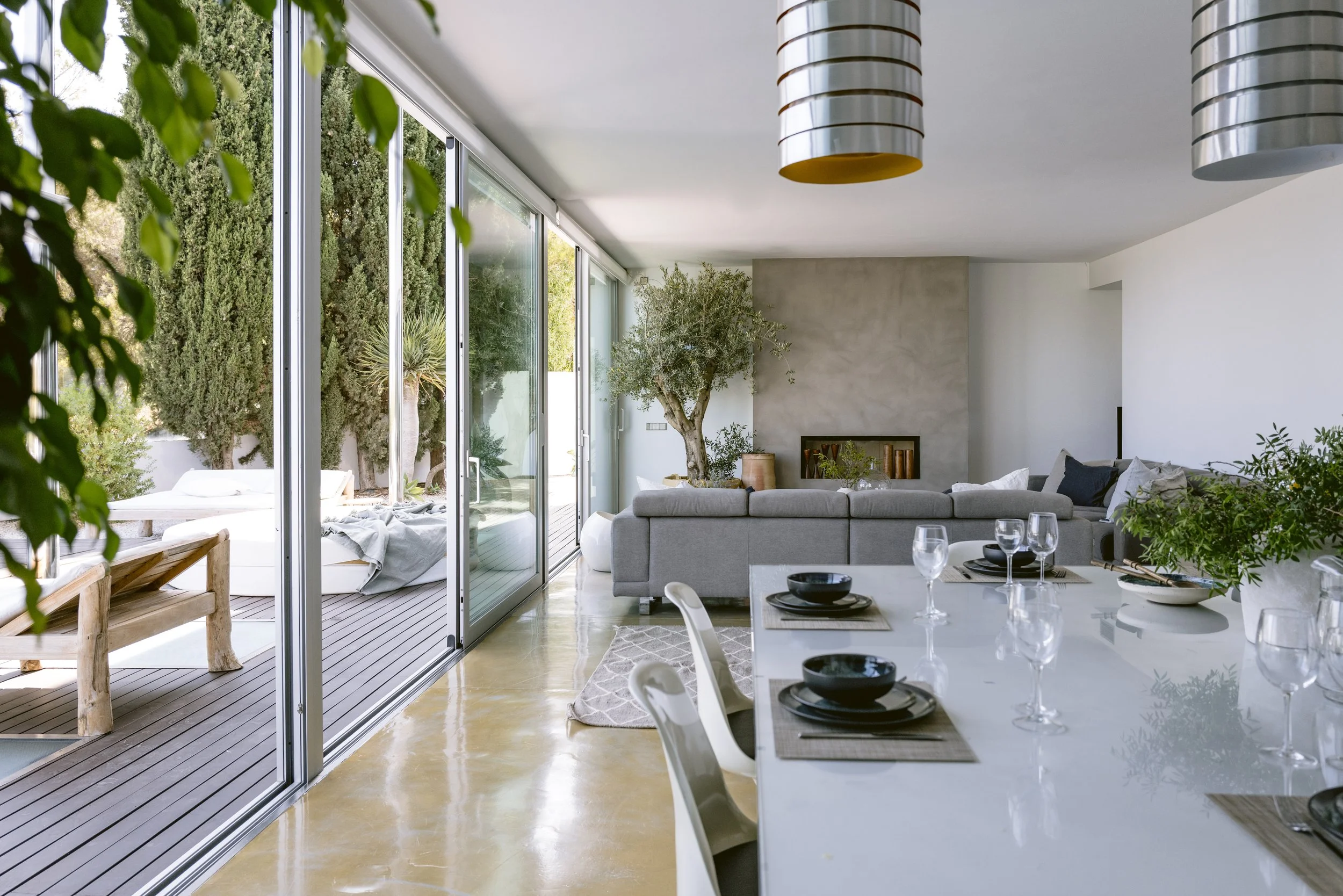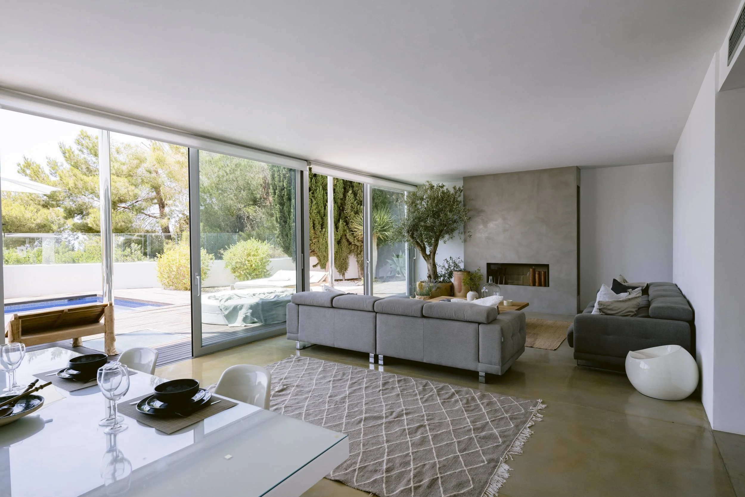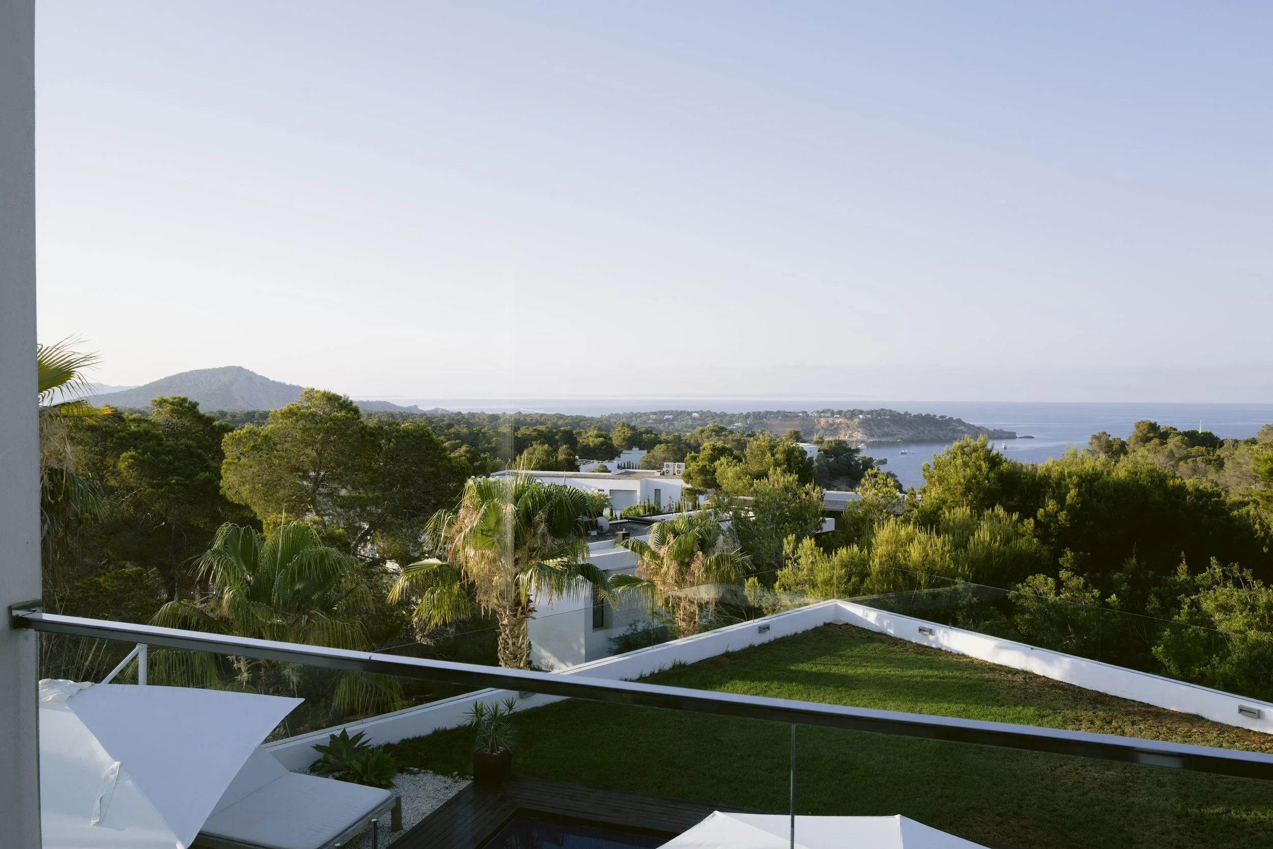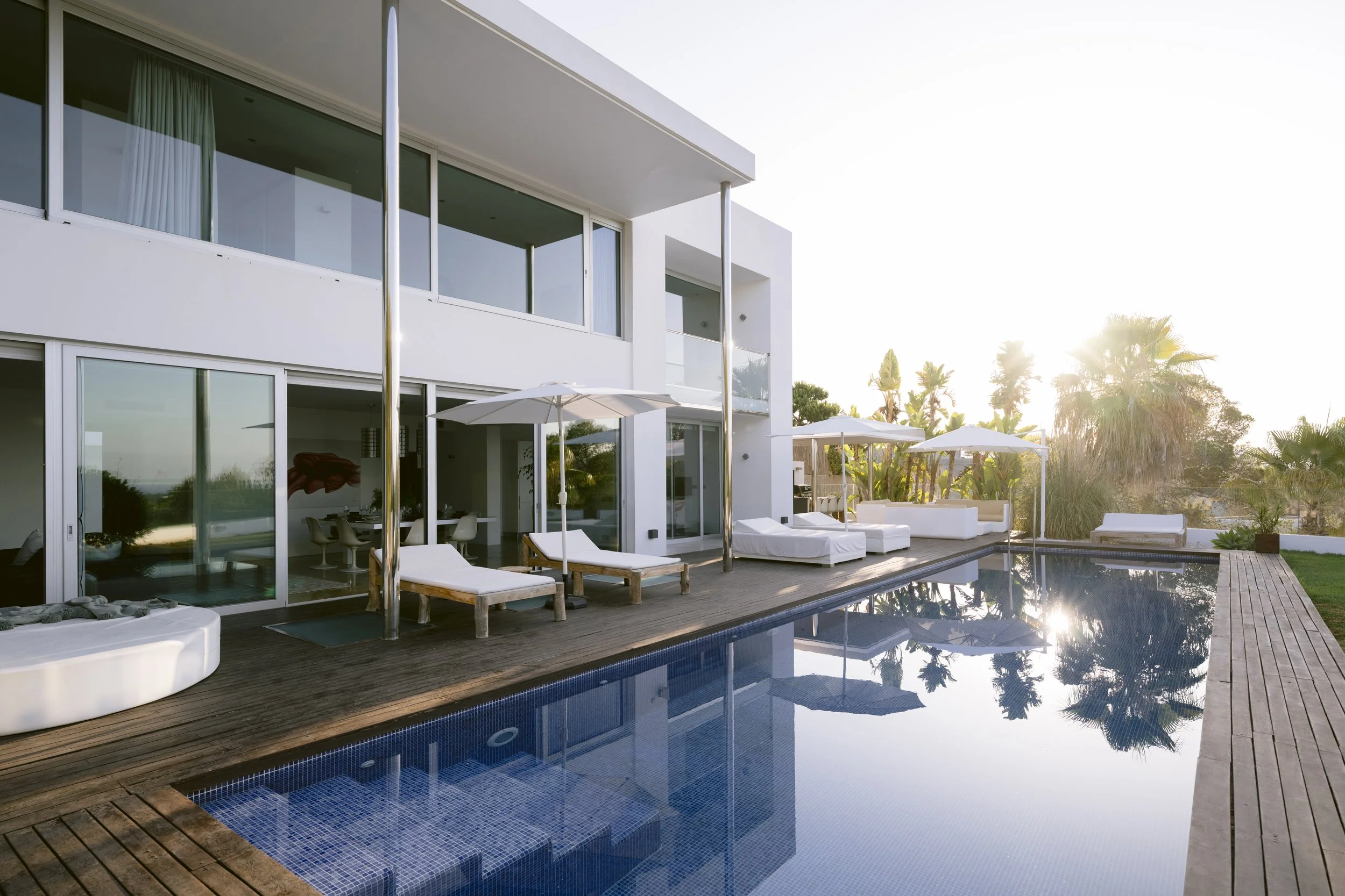 Super modern villa in luxury gated community Vista Alegre close to Cala Jondal and Es Cubells with indoor and exterior pools, spa, garden and spectacular sea views. The house has been designed to capture natural light from every angle and it has been furnished with high end designer features. Every element of modern comfort has been added to this villa located in a privileged neighbourhood with 24 hr. security.
