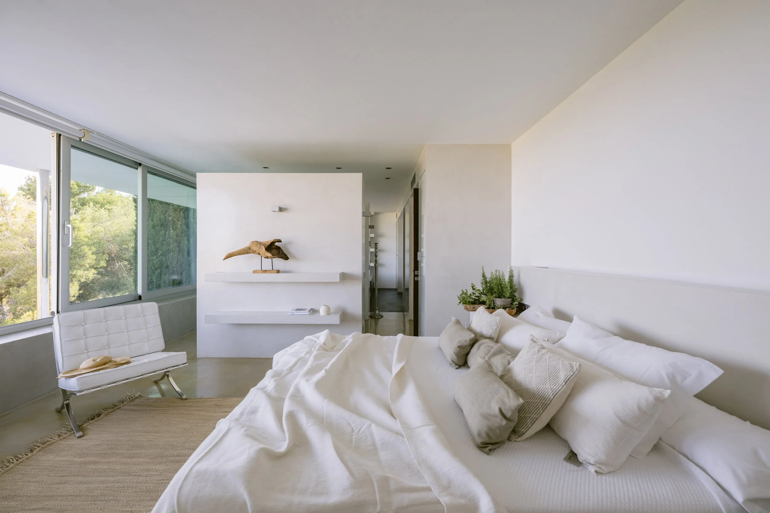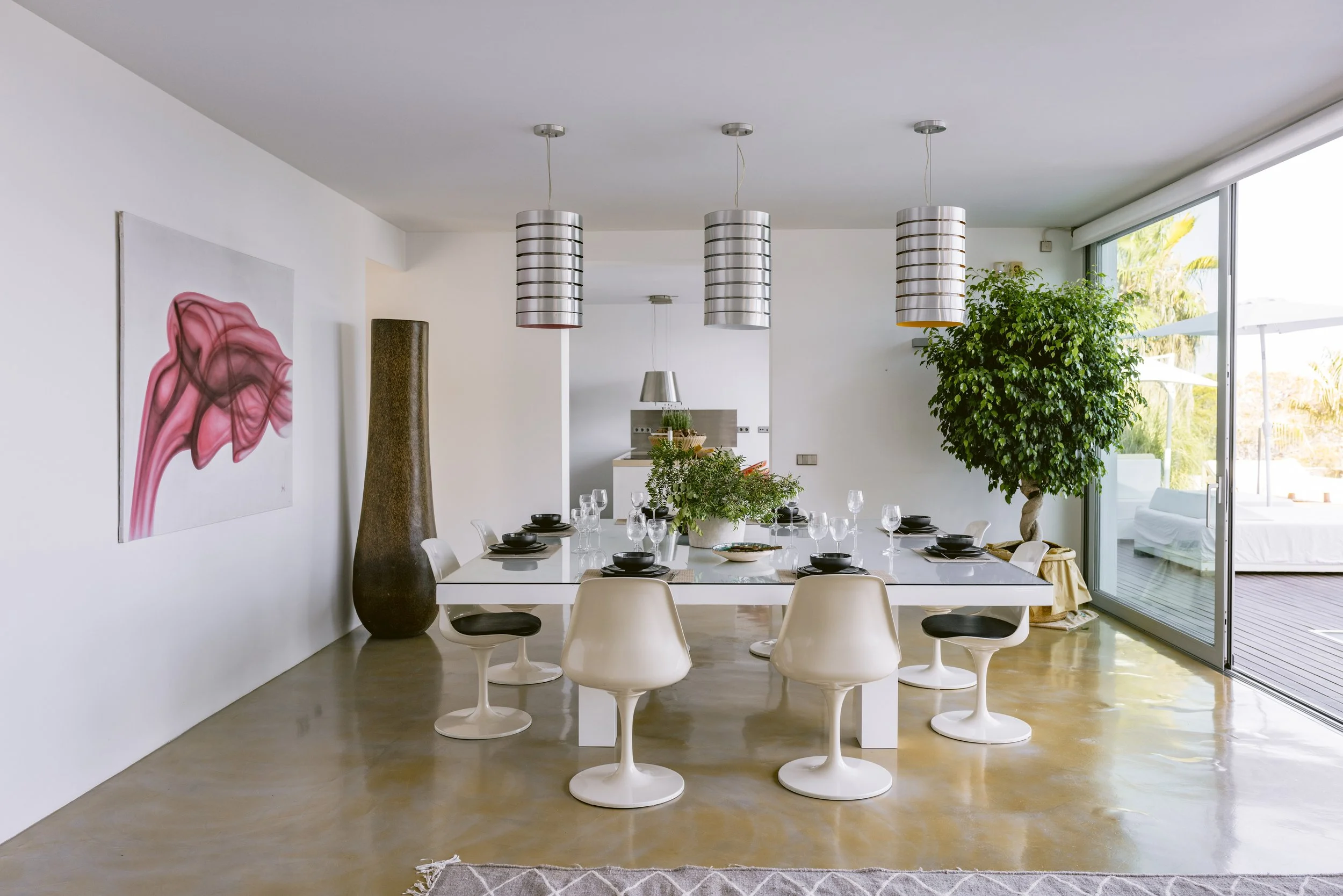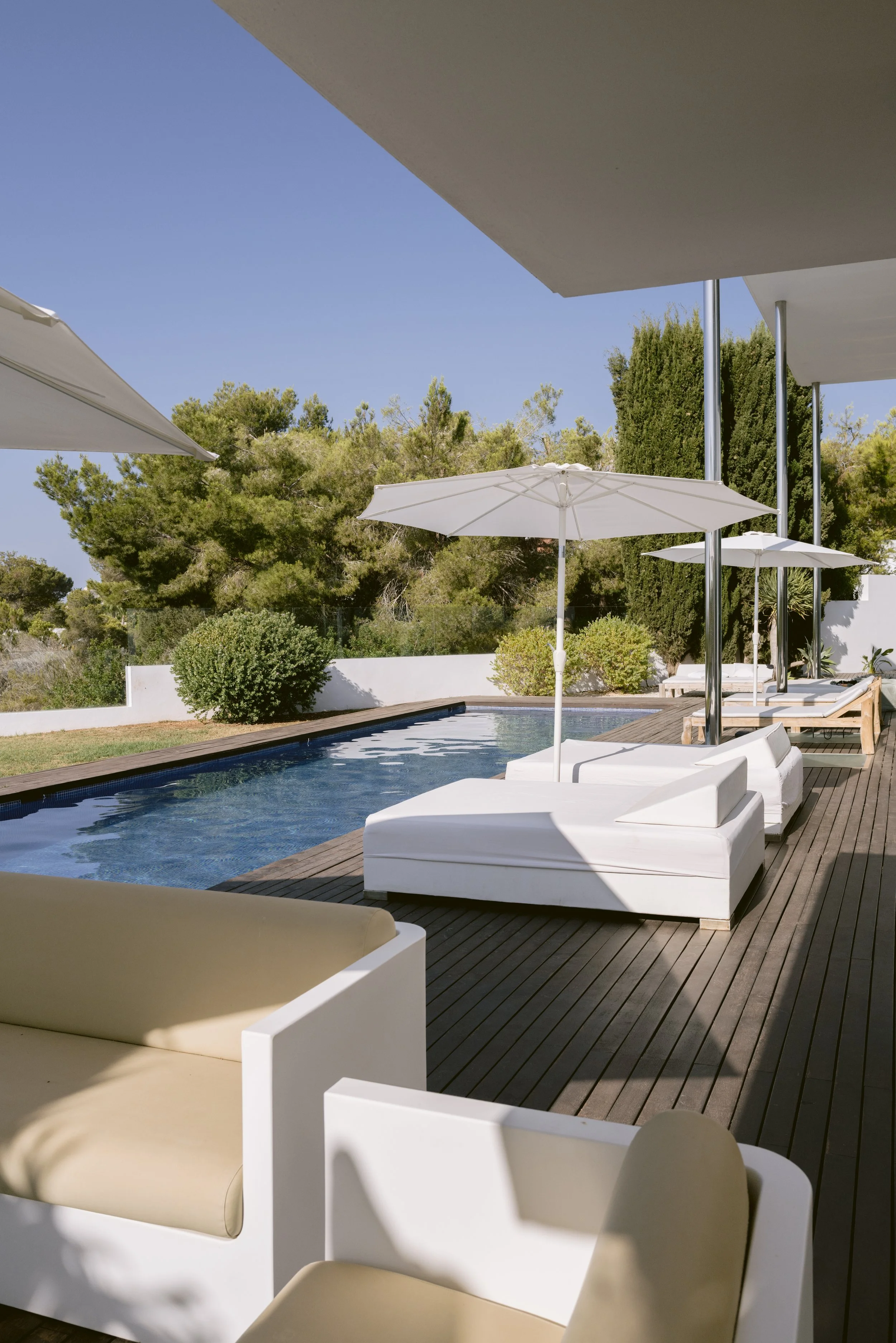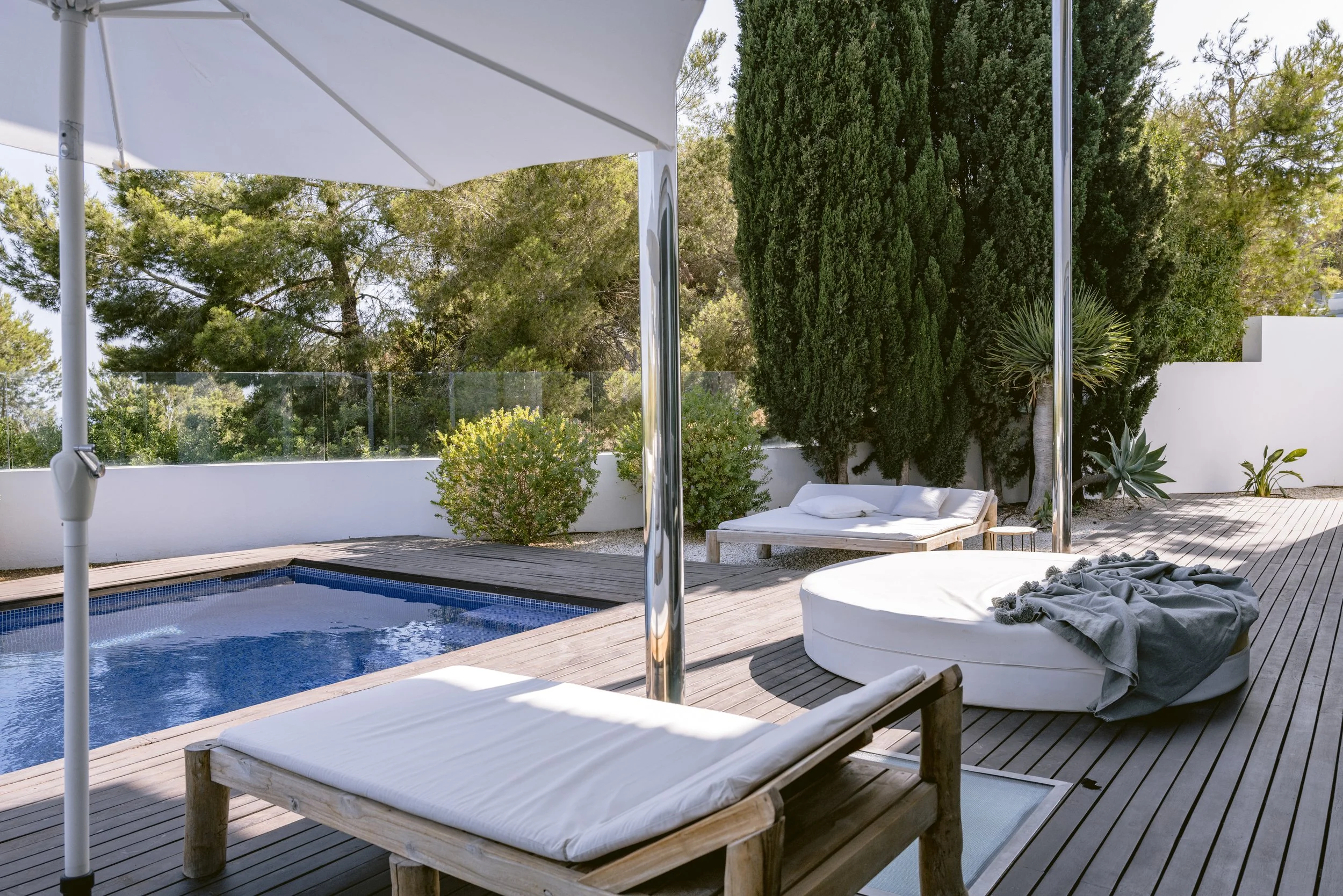 Super modern villa in luxury gated community Vista Alegre close to Cala Jondal and Es Cubells with indoor and exterior pools, spa, garden and spectacular sea views. The house has been designed to capture natural light from every angle and it has been furnished with high end designer features. Every element of modern comfort has been added to this villa located in a privileged neighbourhood with 24 hr. security.
