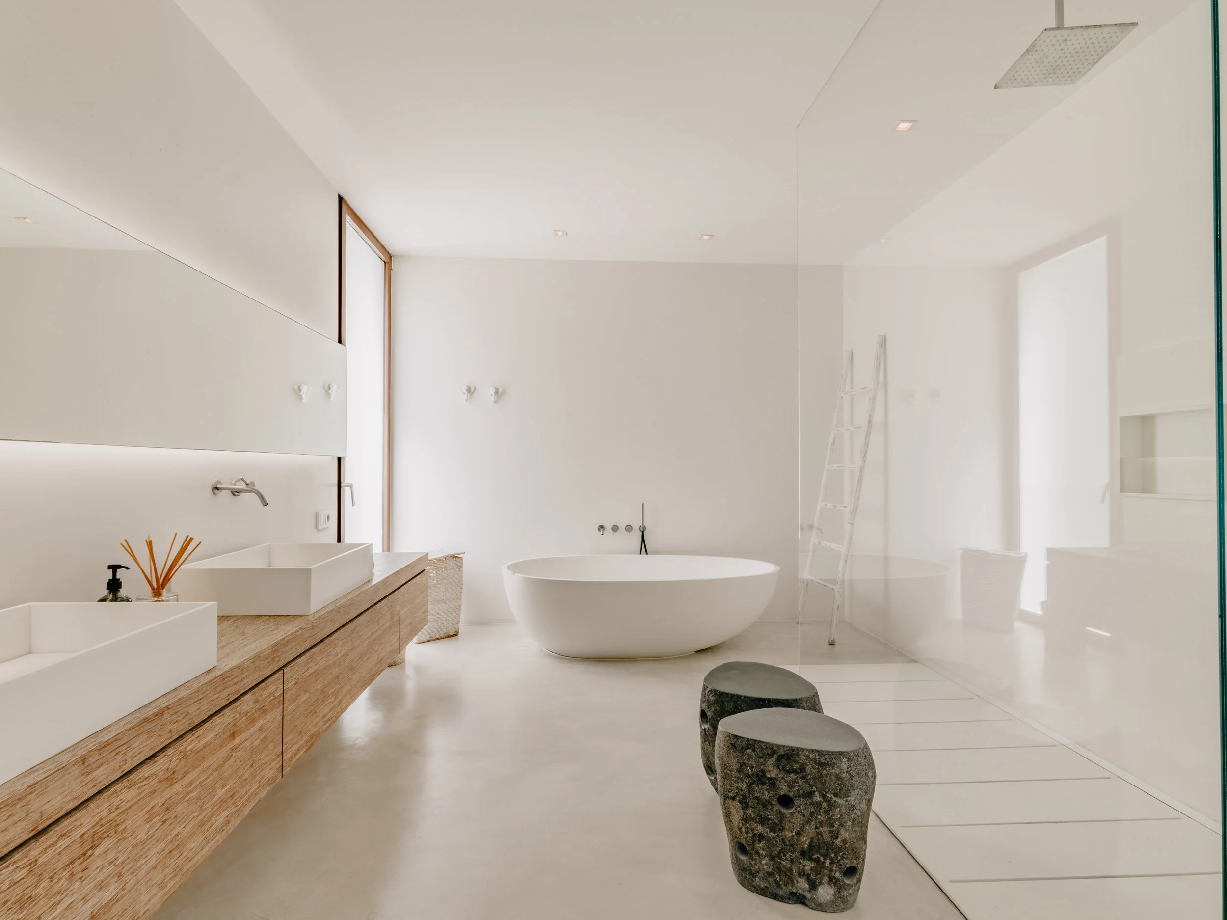 The house boasts a double height grand living room which blends into the beautiful sea and sky panorama through enormous glass sliding doors that open up completely and allow to fuse the exterior with the interior and vice versa. A spectacular 50m long swimming pool and vast terrace space allow for true relaxation as well as lavish entertainment.