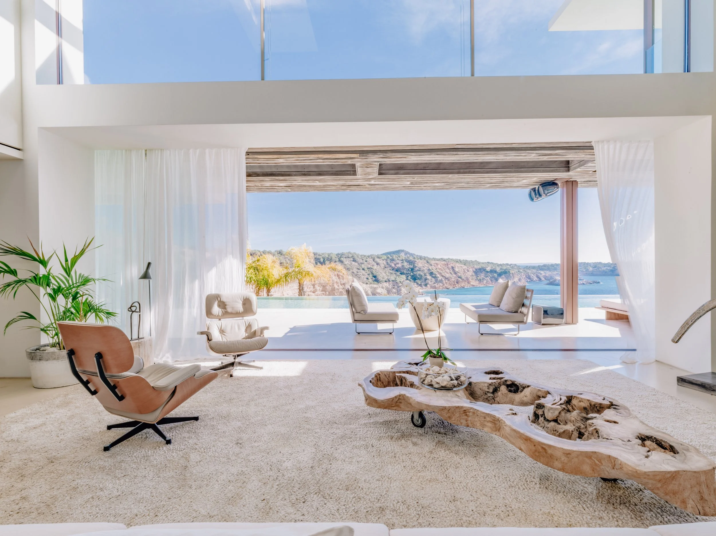 Located in a privileged enclave in the highest part of the Bay of Sa Caixota, the villa sits on the central point of the bay, presiding impressive views towards the peninsula of Porroig and the island of Formentera.