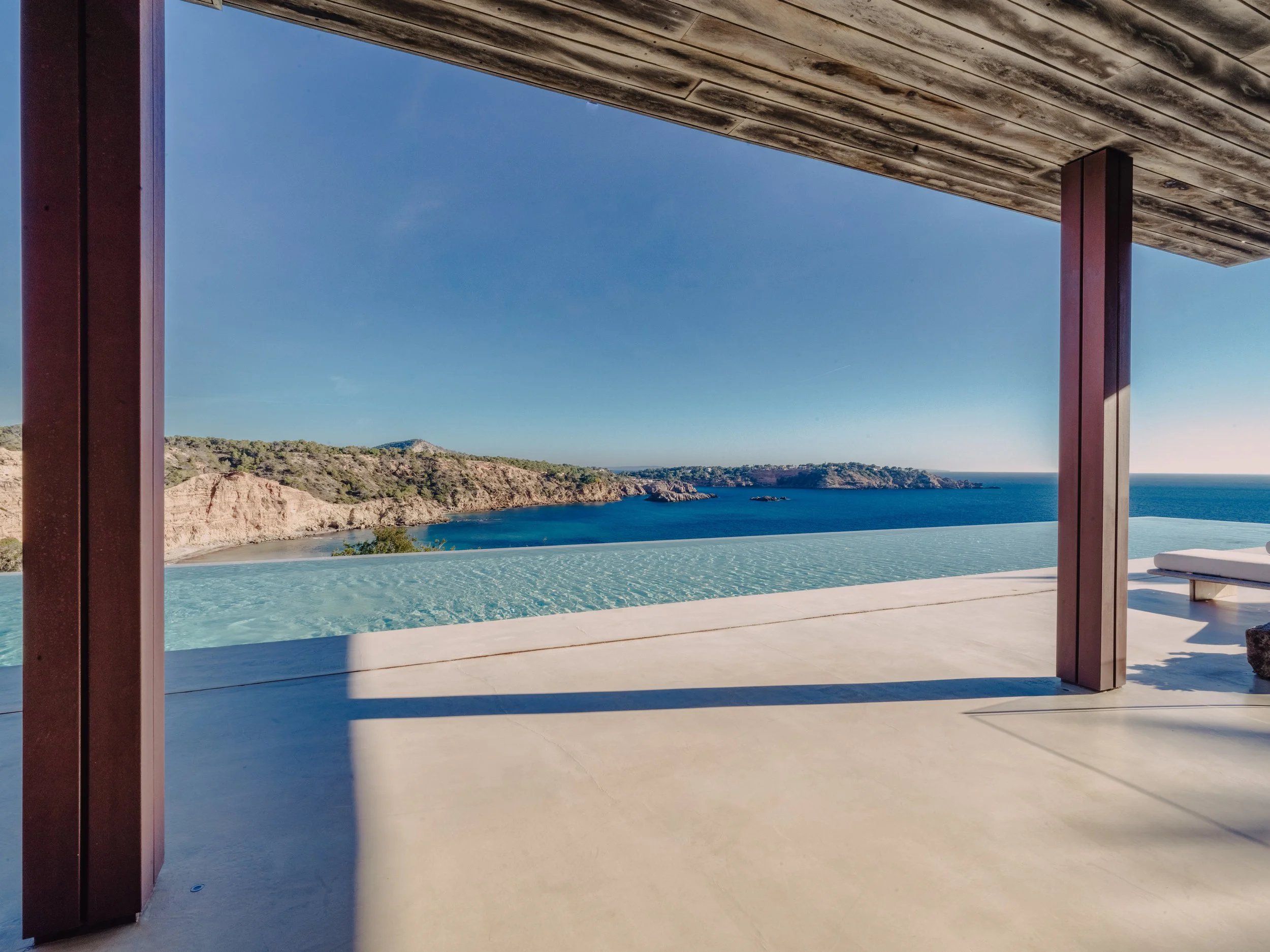 Located in a privileged enclave in the highest part of the Bay of Sa Caixota, the villa sits on the central point of the bay, presiding impressive views towards the peninsula of Porroig and the island of Formentera.